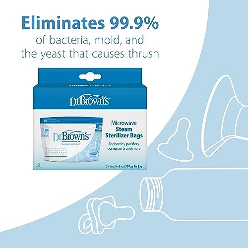 Dr. Brown’s Microwave Steam Sterilizer Bags for Baby Bottles, Pacifiers, Pump Parts and Accessories, Travel Baby Bottle Sterilizer, 30 Uses per Bag, 5-Pack