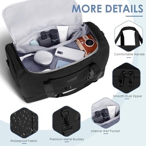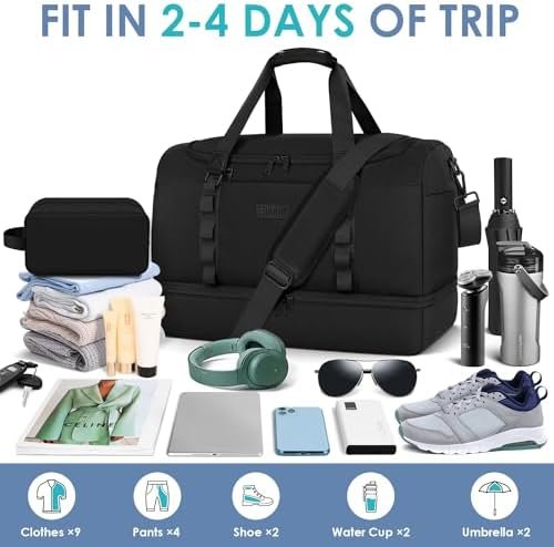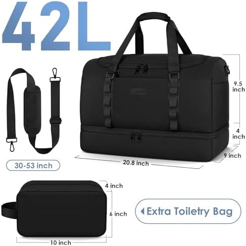 Large Capacity & Lightweight: The duffle bag is 20.8 x 9 x 13.5 inches, the capacity is about 42L can fit in 2-4 days short trip of daily essentials. The travel bag made of high-quality water-resistant fabric and lightweight. Weighs only 1.6 lbs, convenient for travel and carrying.