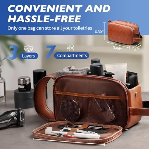 ORGANIZED LAYERS, CLUTTER-FREE: This men’s travel bag for toiletry features 3-tiers and 7 separate compartments and mesh pockets, elegantly organizing all your toiletries and shaving essentials. HOTOR travel accessories are made for a hassle-free travel experience.