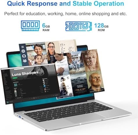 Portable and Fanless design: This 14.1 inch laptop with fanless design, fast heat dissipation and no noise. Lightweight and moderate in weight, making it easy to carry around. Whether at home, in the office, or on the go, it can meet your needs anytime and anywhere, making it the ideal choice for mobile work and learning.