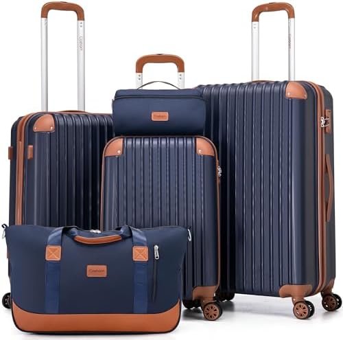 【5 Piece Luggage Set】Luggage sets include a 28-inch large suitcase, 24-inch medium checked luggage, 20-inch carry on luggage, an extended duffel bag, and a toiletry bag. Both the duffel bag and toiletry bag are made from mild, water-resistant polyester fabric. The duffel bag features a back sleeve so you can conveniently attach it to the retractable luggage handle. It is equipped with multiple functional pockets to meet different travel needs.