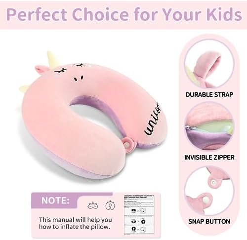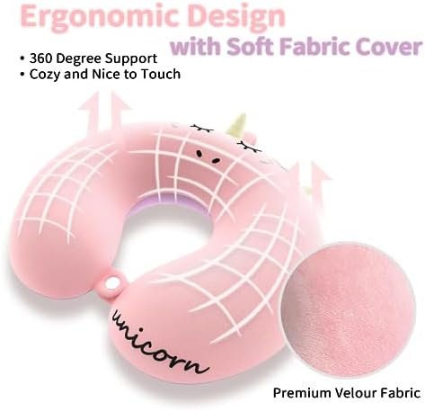 【Pure Memory Foam】: The adorable Unicorn U-shaped kids’ travel pillow is filled with high-quality memory foam that utilizes 3-second return technology. This ensures optimal cushioning and effectively relieves pressure points, offering ultimate relaxation and maximum comfort during your trip. Suitable for both adults and kids during travel.