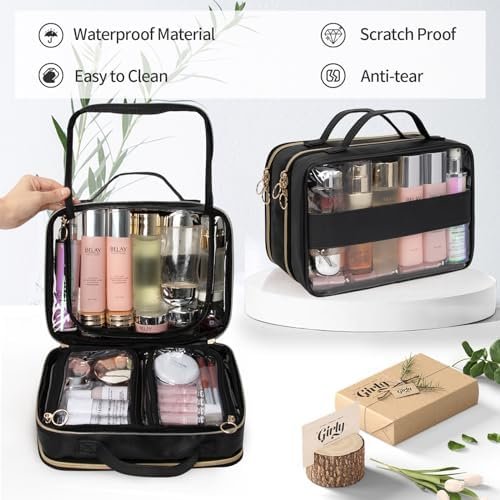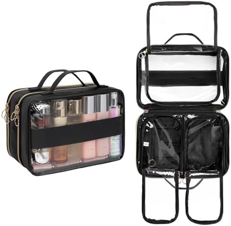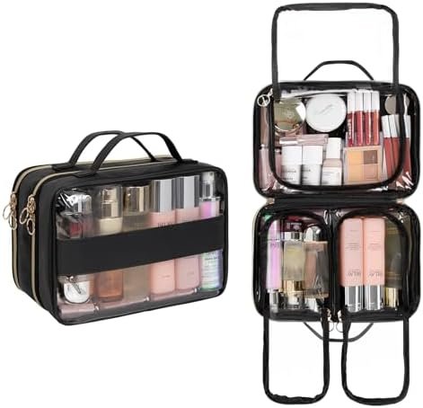 【Portable & see through Design】Travel toiletry bag is portable and lightweight,very suitable for storage of cosmetics in suitcase and easy to carry when traveling or on bussiness. clear see through toiletry bag for women design make it easy to find what your want,You don’t have to go looking for everything all the time.Whatever on travel or as a space save organized used at home