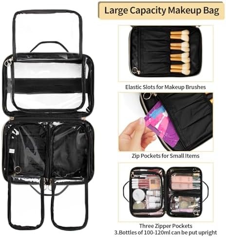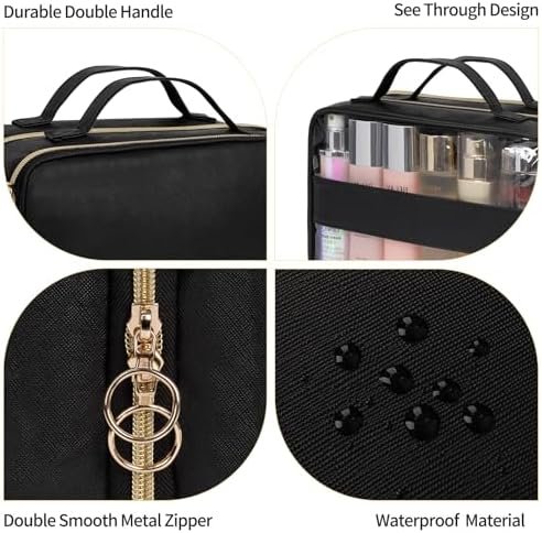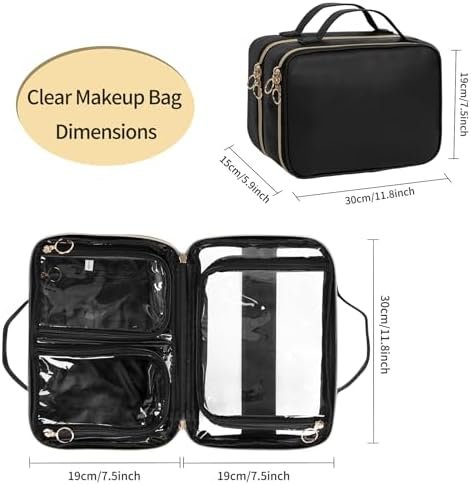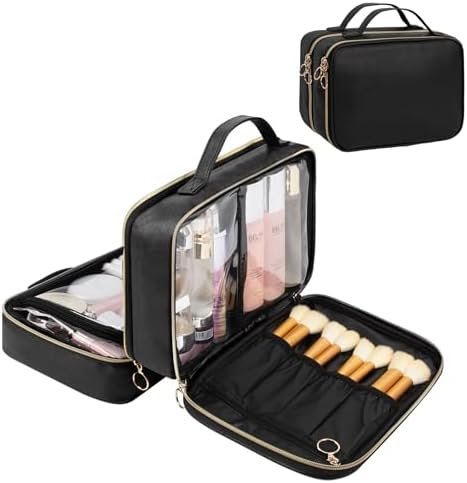 【Large Capacity 】Cosmetic Bag size:11.8“x5.9“x7.5“. both part with double zipper design,can holds a lot of makeup products.Easy storage and orderly.Have enough space to storage your Cosmetics, Skin Care Products, Toiletry Accessories such as lipstick, makeup brushes,eyeshadow palette, eyeliner, powder, liquid foundation